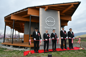 下諏訪町赤砂崎公園のカフェレストランやキャンプ場などを備える複合施設「Suwa no Wa(すわのわ)」が完成し、9日(木)にオープンする。7日、開業式が現地…