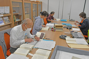 17人が協力者に登録した。週3日間を作業の日に決め、それぞれが都合の良い時間に解読作業を進める。協力者の一人、諏訪市茶臼山の一ノ瀬文夫さん(72)は「花押に興味を持っていたので参加した。少しでも崩し字などが読めるようになりたい」と、長野県史、諏訪資料叢書などを脇に置き、黙々と読み進めた。