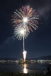 諏訪湖の全国新作花火競技大会をリニューアルした「全国新作花火チャレンジカップ2025」は予選グループBを終え、後半戦に入る。20日(土)のグループCからは開始時刻を早め、午後6時半にスタート。実行委員会は「早めの時間なので、子どもたちや家族連れの皆さんにも諏訪湖の花火文化を体感してもらえたら」とアピールする。