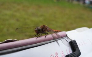 2025年10月15日猛暑の夏が過ぎ、気付けば心地よい秋風の季節。箕輪町内の小学校で運動会の取材をしていると、クリップボードの端にトンボが止まった。子どもたちの歓声が響く中、羽を下ろしてくつろぐ姿に思わず見入ってしまった。気候変動で「四季が二季になる」とも言われる昨今。〝秋の詰め合わせ〟のような一瞬に幸せな気持ちになった。(泉)