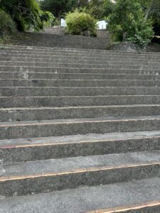 上伊那地域にある短期大学構内の屋外階段。昨年、取材で訪ねた時に短大の関係者から「108段です」と聞いた。たまたまなのか、煩悩の数と一緒。先日、再び取材で訪ねた折に上りながら数えてみた。50段を過ぎると煩わしくなり、途中で挫折。108まで数えるだけの単純作業につまずき、精進が足りないと痛感した。(晋)