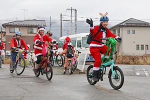 サンタライドは自転車の魅力の発信や自転車を使った交流人口の増加などが狙い。町内外で行っており、町内での開催は3回目となる。小口代表は「手を振ってくれる通行人もいてやって良かった。今後も開催したい」としていた。