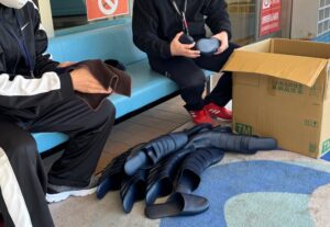 岡谷市民総合体育館の西体育館改修が終わり、しゅん工検査を取材した。終了後、かつて取材した人に出会って話し込み、つい長居した。帰ろうとした時に見えたのは、担当者が来場者の使ったスリッパを1足ずつ丁寧に拭く姿。イベントでは表のにぎわいに目が向くが、陰で黙々と手を動かす人がいる。施設や組織を支えているのは、そんな目立たない仕事の積み重ねなのだろう。(北)