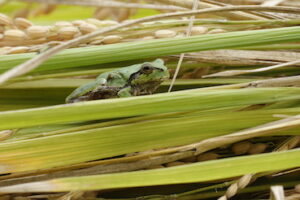 実りの秋 稲束に逃げ込んだ小さな生き物 2025.09.20