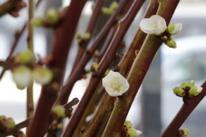〝春〟が来た。年始早々、自宅の水道管が凍ってまだ直ってないがそれでも支社にはやって来た。読者の方が持ってきてくれた梅の枝に、白い小さな花が咲いたのだ。取材から…