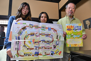 県シニア大学諏訪学部卒業生有志でつくる「みづうみの風」は、県福祉大学校(諏訪市清水)介護福祉学科の協力を得て、回想法を盛り込んだ諏訪版オリジナルすごろくを完成…