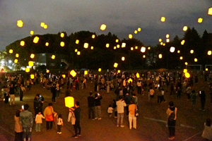 箕輪町は5日夜、町発足70周年記念事業「スカイランタン in minowa」を箕輪中学校グラウンドで開いた。町民など約300人がランタン約100基を打ち上げ、…