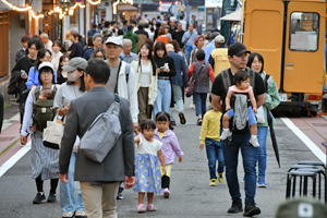 JR下諏訪駅前の通称オルゴール通りをメインに20日、食べ歩きイベント「およりなんしょ夜市」があった。駅前商店街の14飲食店にキッチンカーやテントが加わり、約4…