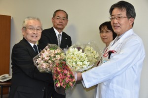 JA信州諏訪農政対策協議会は2日、新型コロナウイルス感染症で緊張が続く医療従事者らの癒やしになればと、岡谷市民病院へアルストロメリア100本を寄贈した。小松八…