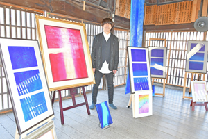 絵画創作で海外からも評価される美容師の後藤吉久さん(諏訪市四賀武津)が小和田の八剱神社神楽殿で個展「諏訪想(おも)ふ」を開いている。5日から始まった同神社の御…